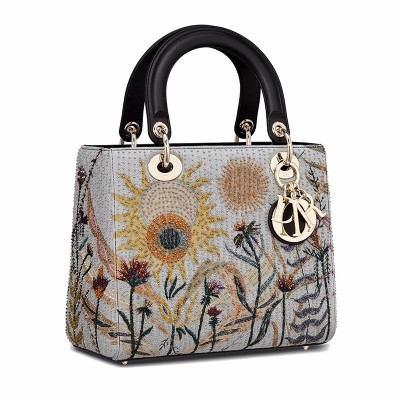 首页 > > 女士包袋 > 【包邮包税】DIOR/迪奥 2020春夏新款 Lady Dior系列 女士灰色小牛皮拼接彩绣戴妃手提包 M0565OURV_M885