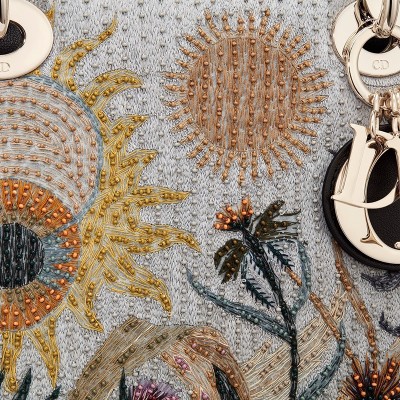 Lady Dior手提包体现了Dior家居的优雅和美感。精致而女性化,这是永恒的创新,但仍时而流行。受到凯瑟琳·迪奥(Catherine Dior)坚强独立的性格以及对园艺的热爱启发,这款神话般的小牛皮模特儿手工绣有“暮光之城”花园和珍珠图案。浅金色金属制成的“ DIOR”饰物可增强并照亮其轮廓。这款中号款式有可拆卸的皮带。
