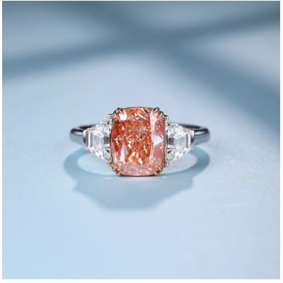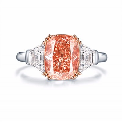 GIA证书 ZOCAI/佐卡伊3克拉枕形橘色钻戒奢华异形钻 定制